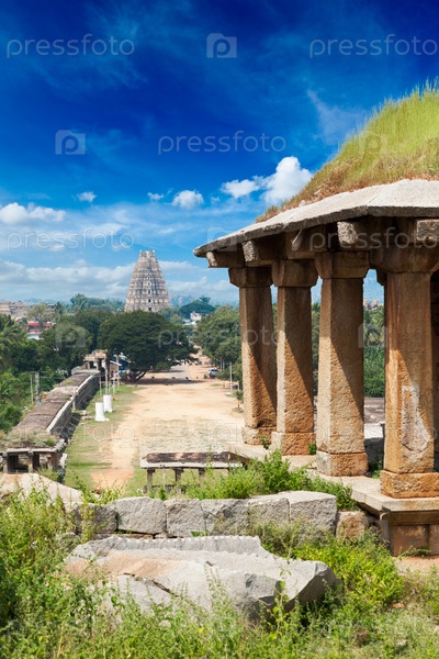 Древние руины в Хампи. Хампи базар, Хампи, штат Карнатака, Индия