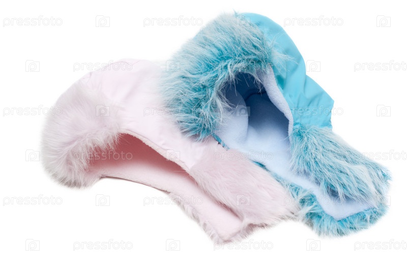 Детские шапки на белом фоне