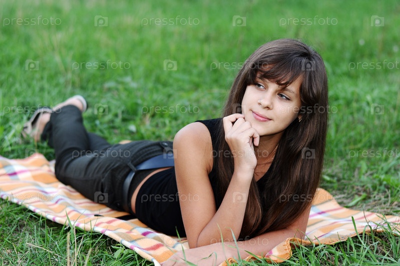 Молодая девушка брюнетка на природе