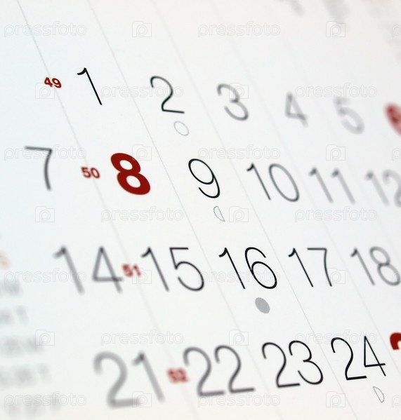 Фрагмент страницы календаря с датами