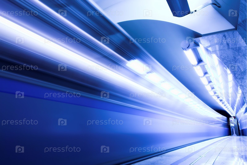 Быстрый поезд подъезжает к платформе зала метро