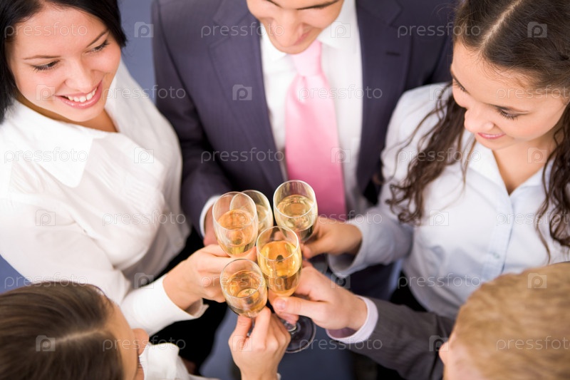 Фото счастливых друзей, выпивающих тост во время вечеринки