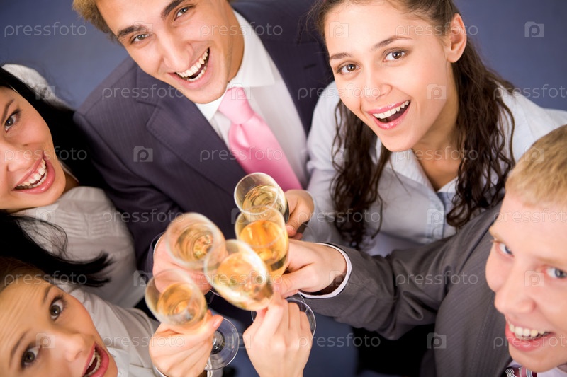 Фото счастливых друзей, радующихся во время корпоративного вечеринки