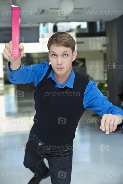 Студент ставит книгу на полку