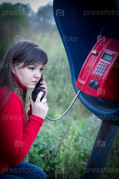 Девушка звонит по телефону автомату