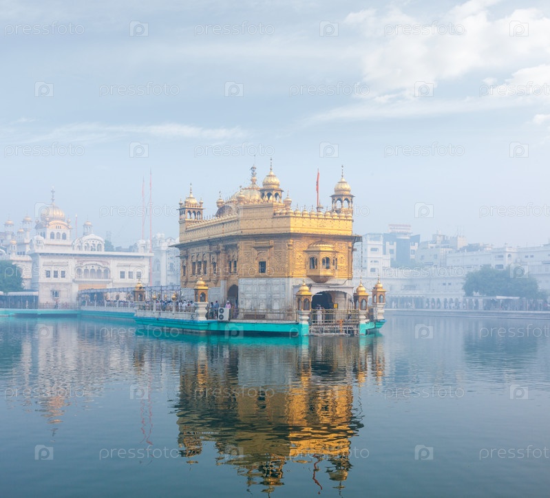 Золотой храм Сикх Гурдвара (Хармандир-Сахиб) в тумане. Амритсар, Пенджаб, Индия