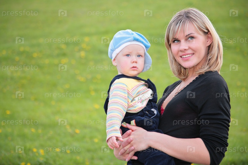 Мама с ребенком на зеленом лугу