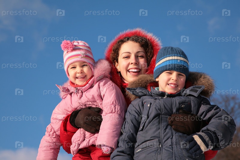Мама с детьми на прогулке зимой