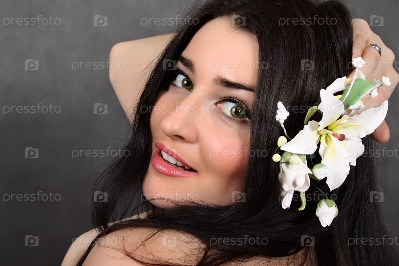 Красивая женщина с цветком в волосах