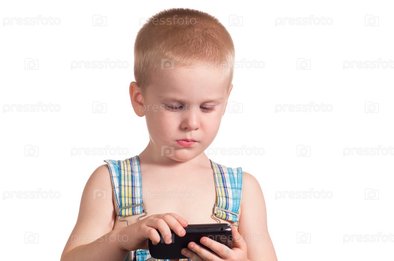 Маленький мальчик играет со смартфоном