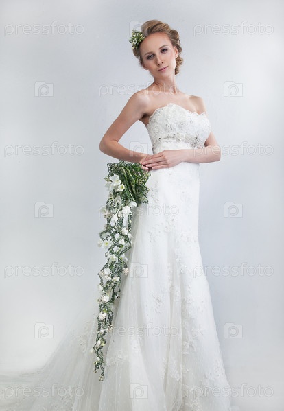 Чувственная невеста с цветочным букетом