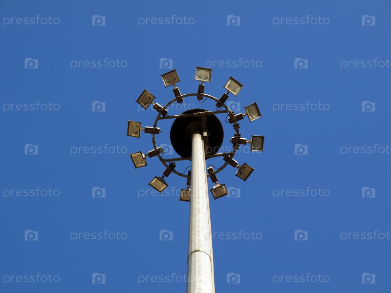 Точечные светильники для уличного освещения зданий на фоне голубого неба