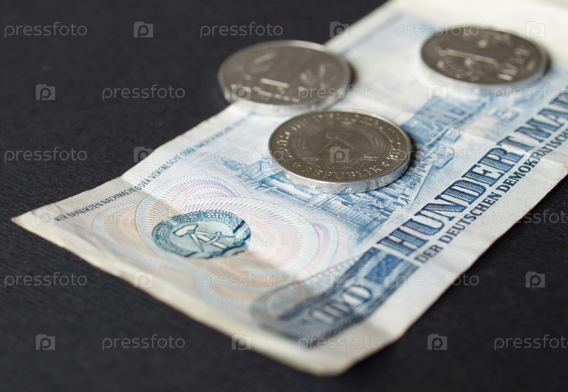 Банкноты из ГДР достоинством 100 марок (Восточная Германия), не использовались после воссоединения Германии в 1989 году