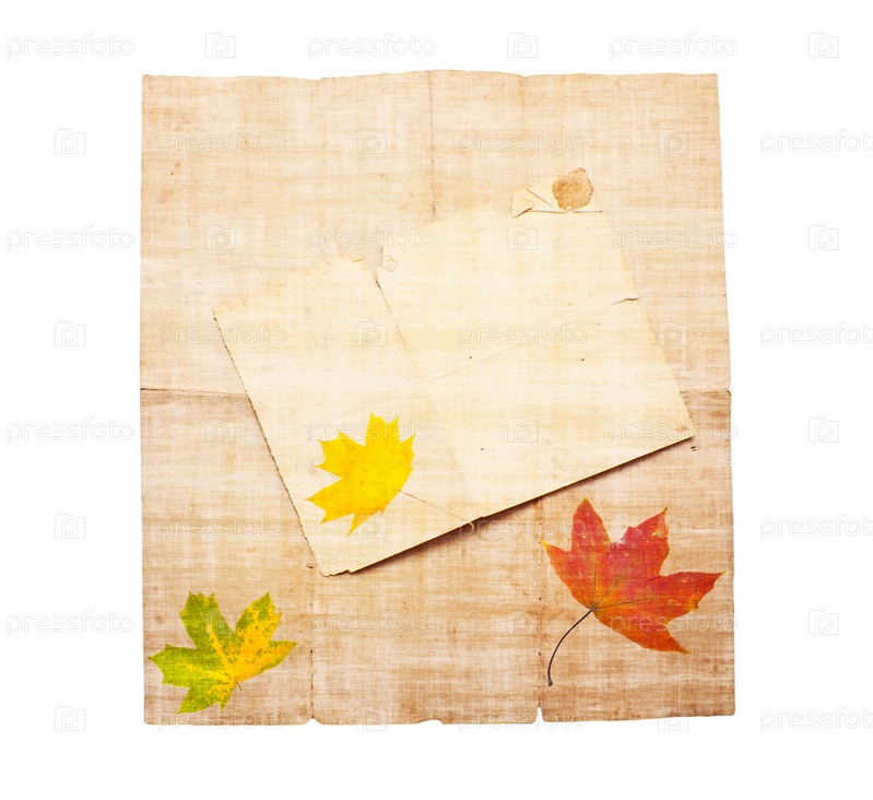 Абстрактный фон в виде старой грязной бумаги с осенними листьями