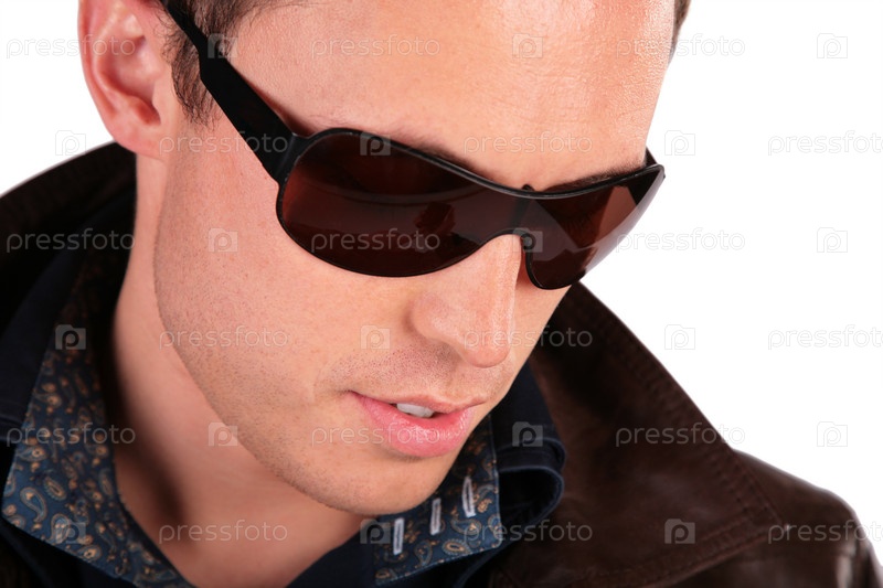 Портрет молодого человека в солнечных очках на белом фоне