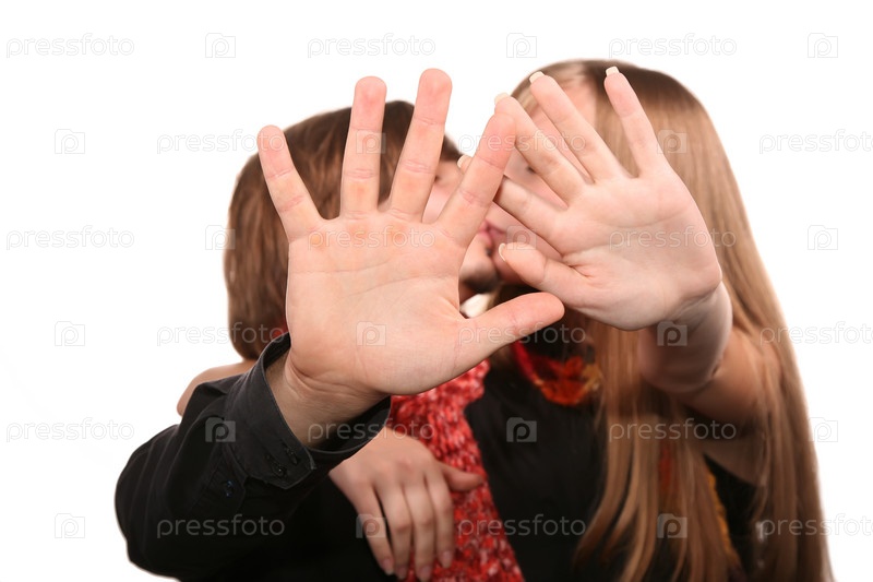 Молодая пара целуется, на белом фоне