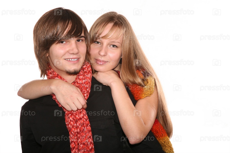 Молодая пара, на белом фоне