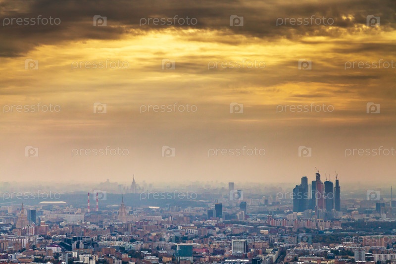 Желтый осенний закат в Москве