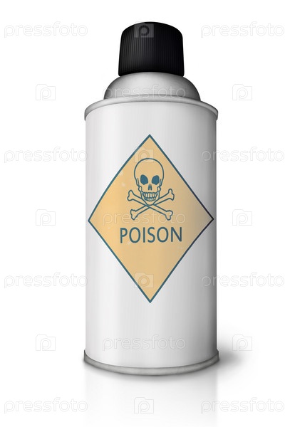 Пустой аэрощоль со знаком ЯД и отражением на белом фоне