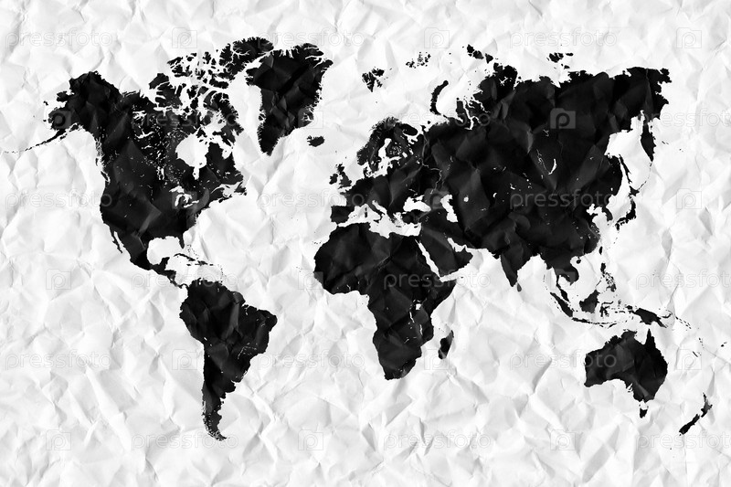 Карта мира на мятой бумаге