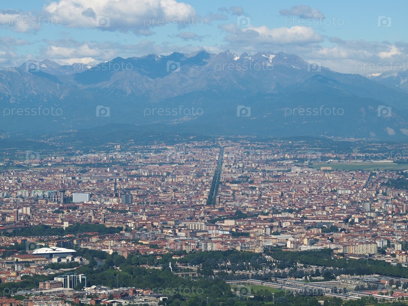 Вид города Турин с холма