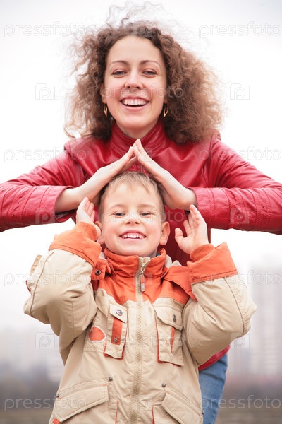 Мама сделала крышу из рук над головой сына
