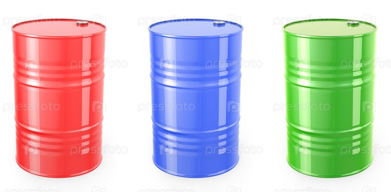 Три бочки - красная, зеленая и синяя