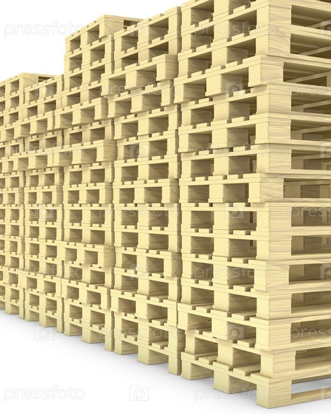 Стопка деревянных поддонов, изолированных на белом фоне