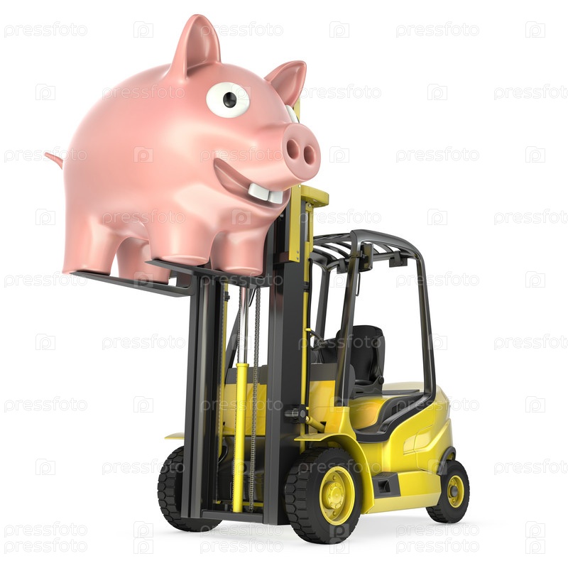 Вилочный погрузчик поднимает копилку