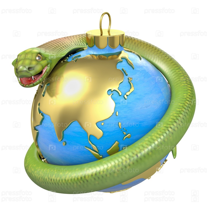 Рождественская игрушка с картой Азии висит на кобре