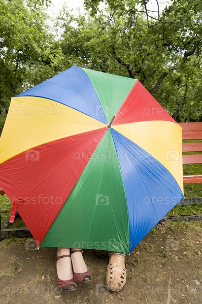 Молодая пара в парке Под зонтом