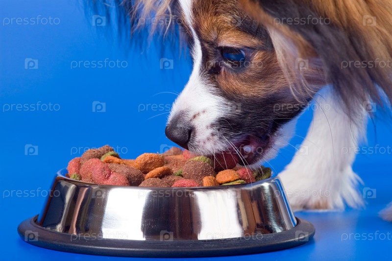 Щенок ест корм