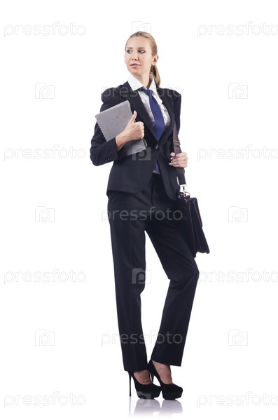 Деловая женщина с портфелем на белом фоне