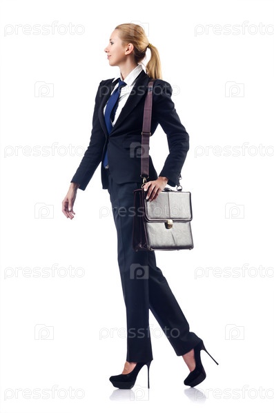 Деловая женщина с портфелем на белом фоне