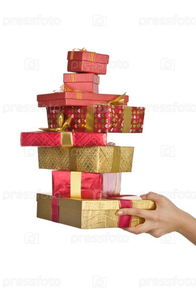 Рука держит стопку подарков