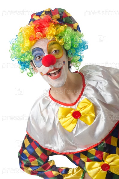 Забавный клоун на белом фоне