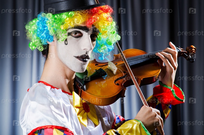 Клоун играет на скрипке