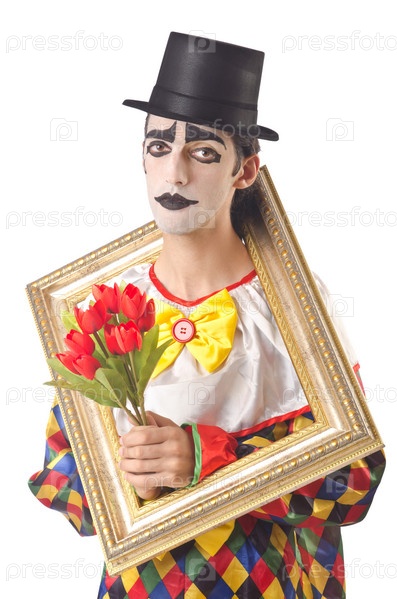 Клоун с рамой в студии