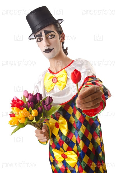 Печальный клоун на белом фоне