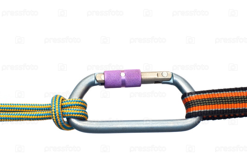 Альпинистское снаряжение - карабины и две веревки
