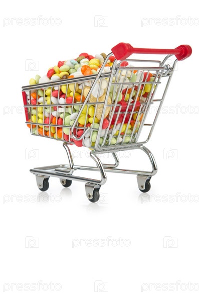 Корзина с множеством ярких таблеток