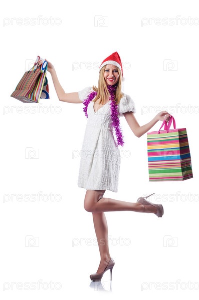 Молодая женщина с рождественскими покупками