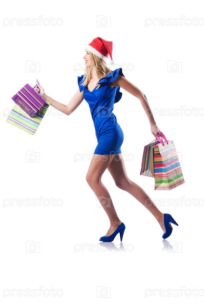 Молодая женщина с рождественскими покупками