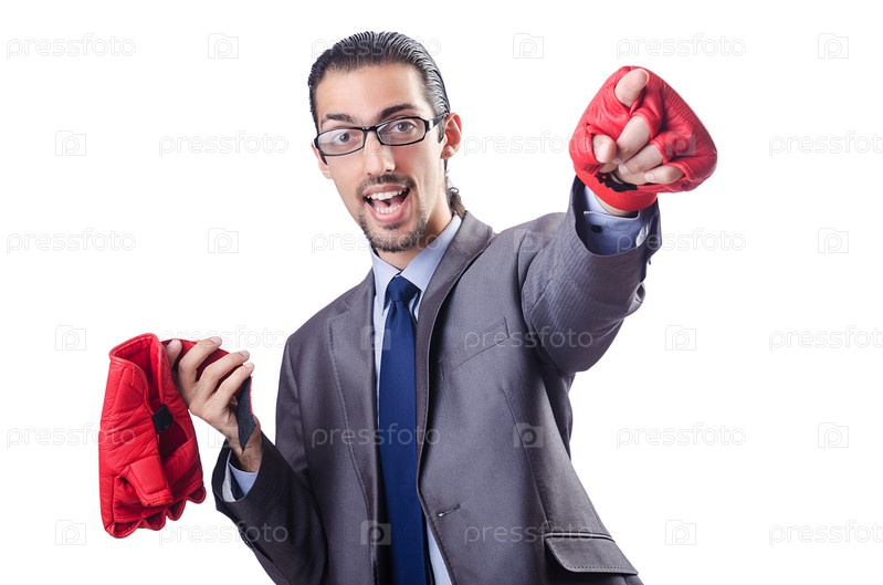 Смешной бизнесмен с боксерскими перчатками