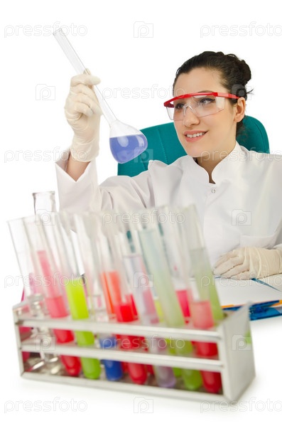 Женщина-химик на белом фоне