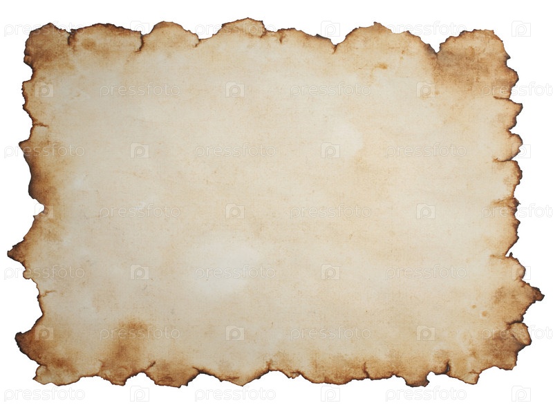 Старая пожелтевшая бумага на белом фоне
