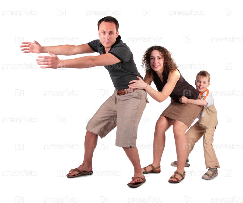Сын и мать держат отца