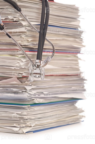 Стопка документов и стетоскоп
