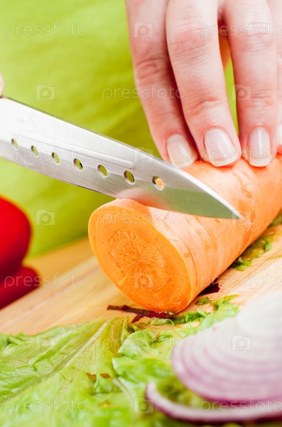 Женские руки нарезают овощи