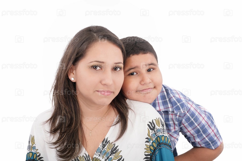 Мать и сын, изолированные на белом фоне